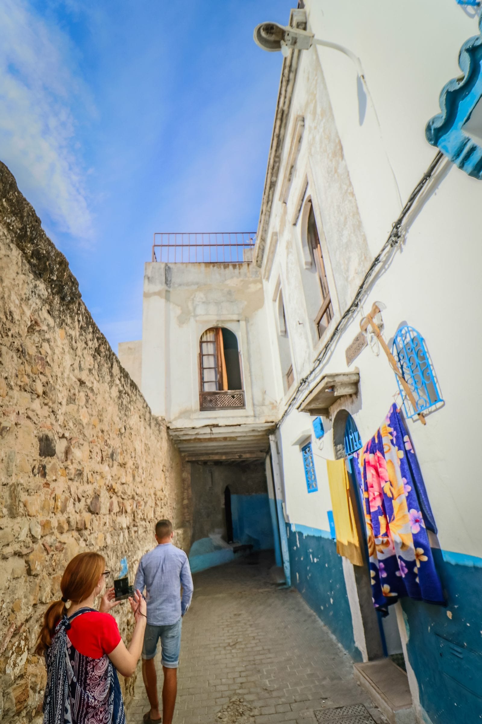 Lisa walking to the restaurant-Tangier Morocco