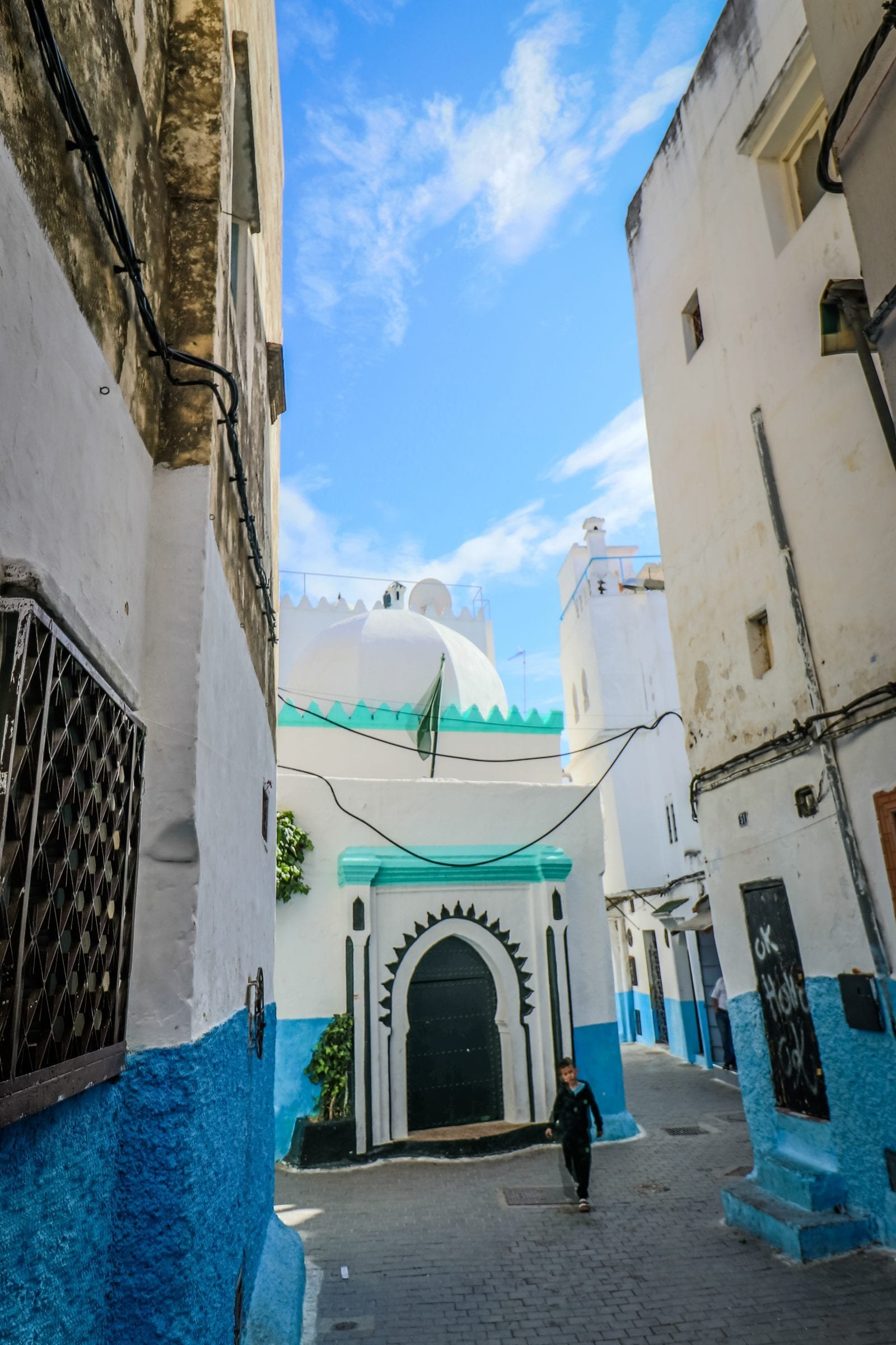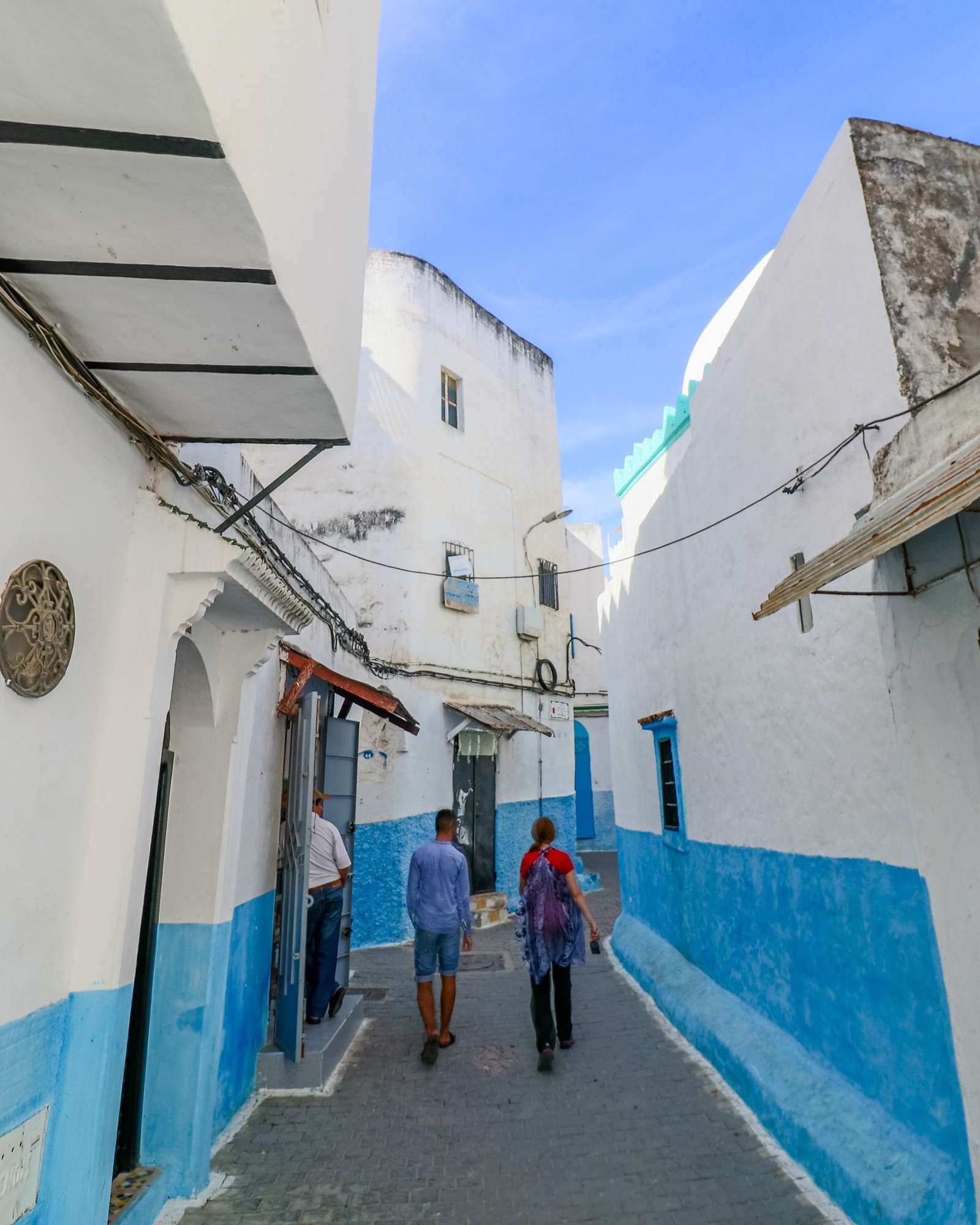Blue and white streets in Tangier Morocco
