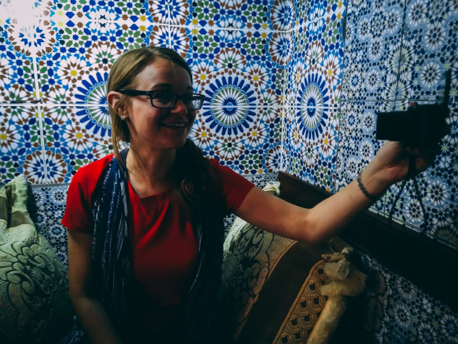 Lisa vlogging in Restaurant Rif Kebdani-Tangier Morocco