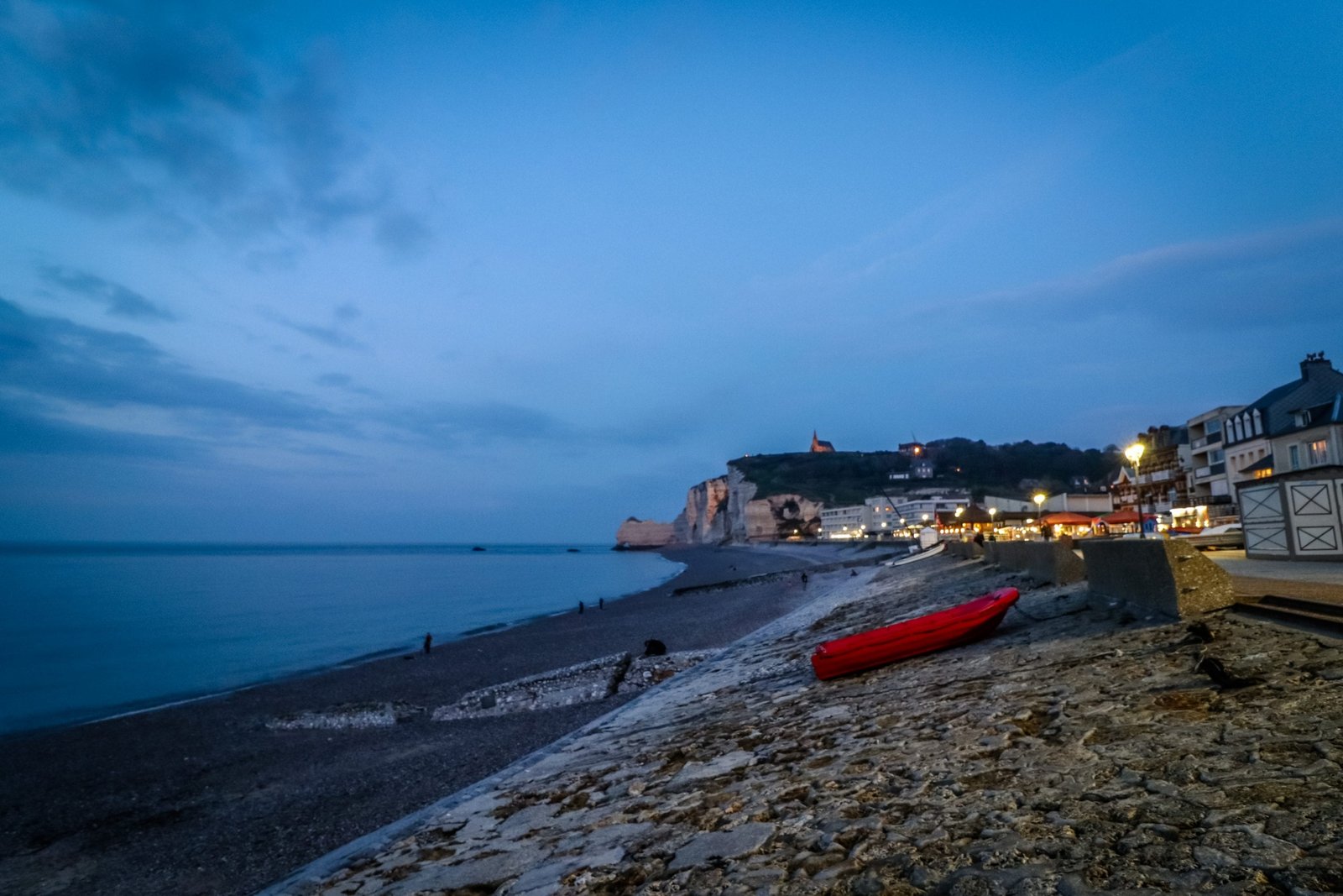 - Drive to Étretat, France where we enjoy a stroll along the beach, relax with a bottle of French wine while the sun goes down, then sleep in our car.