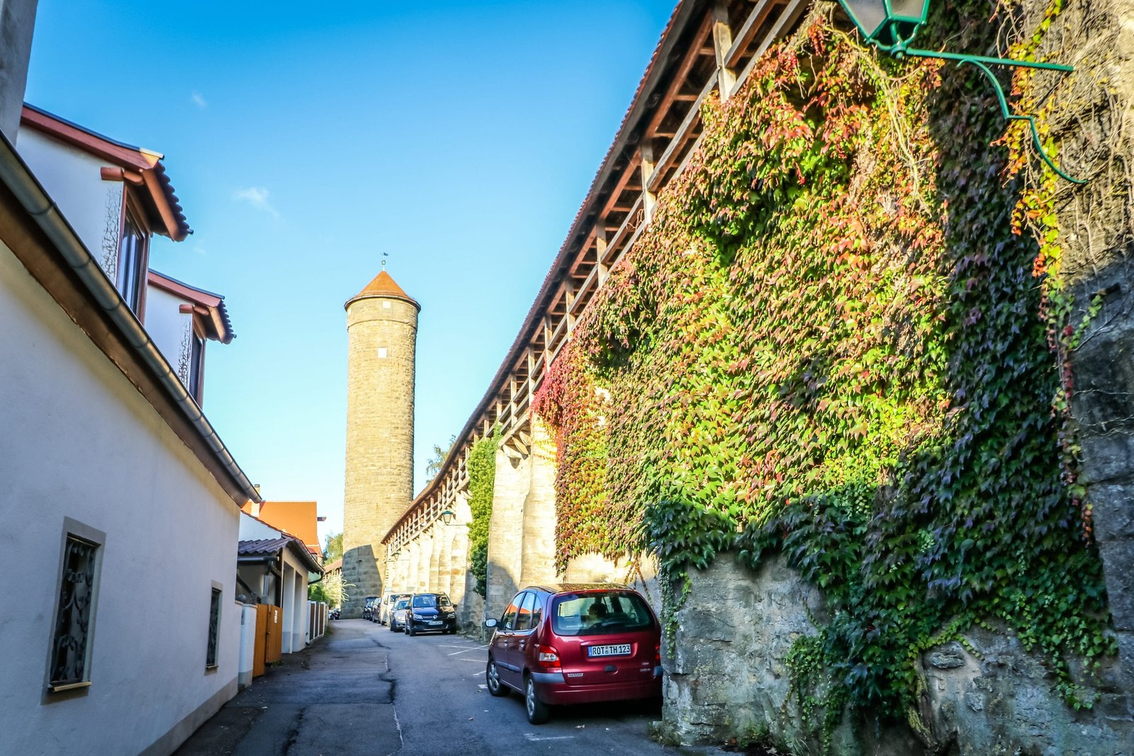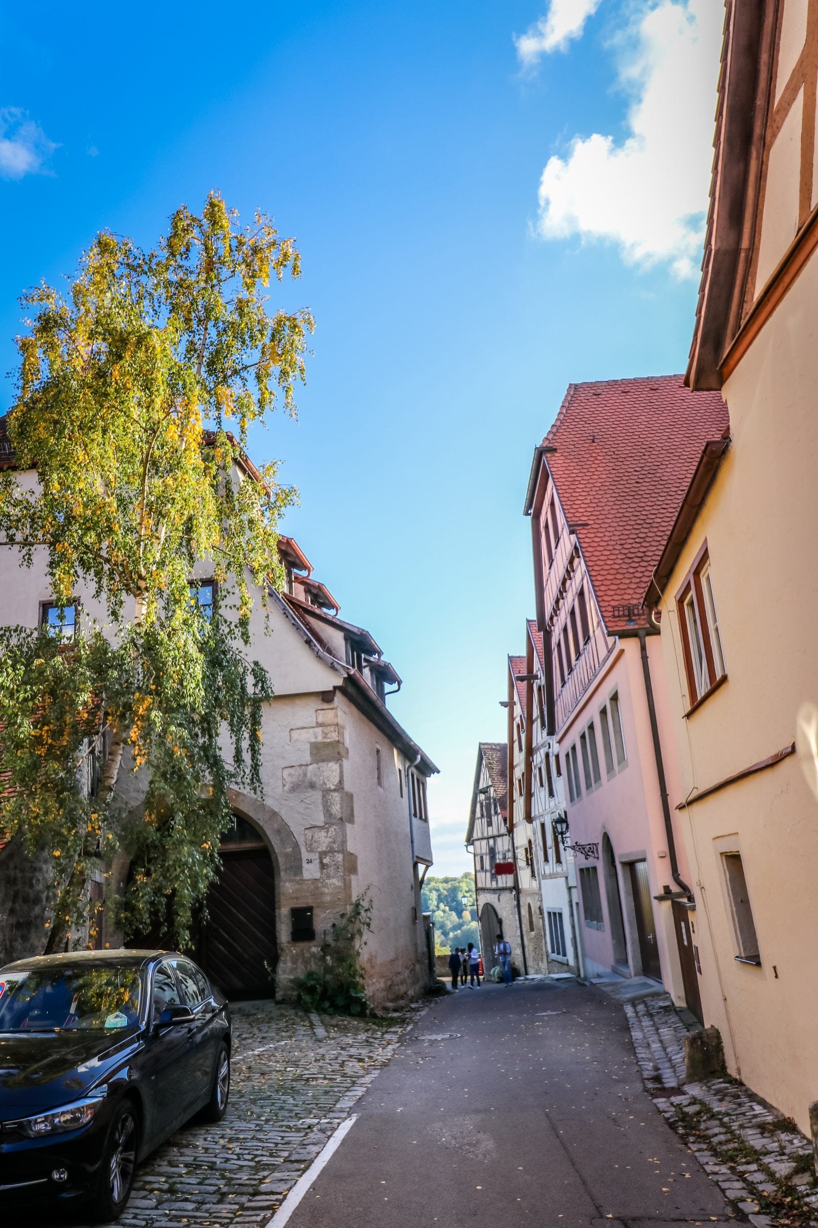 Driving down a narrow street in Dinkelsbühl Germany