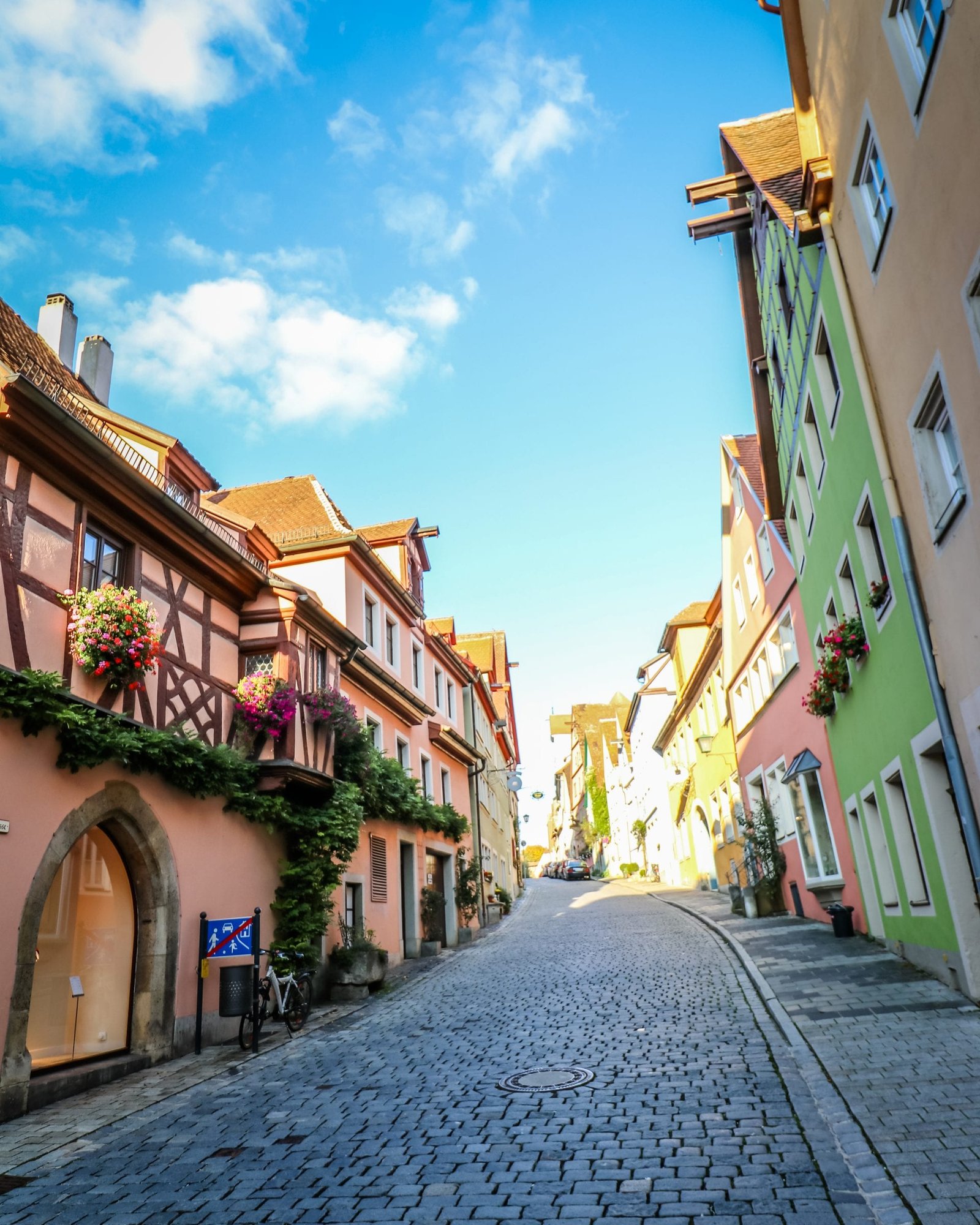 Cobblestone street and colorful buildings-Rothenburg ob der Tauber Germany