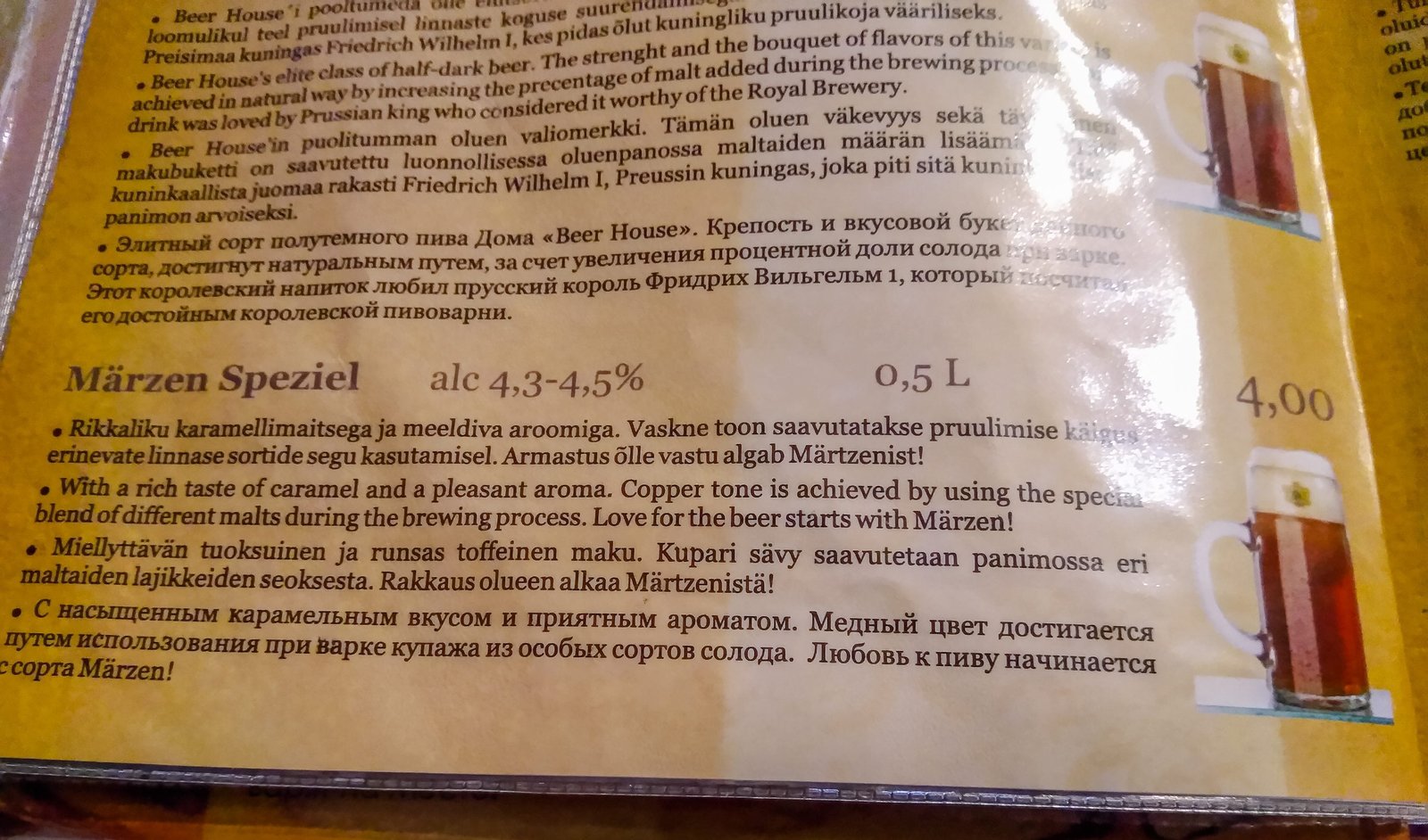 Marzen Speziel Beer from the Beer House-Tallinn Estonia