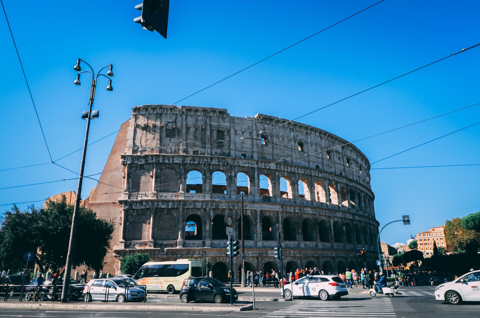 Day time traffic in front of the Colosseum-Rome Italy