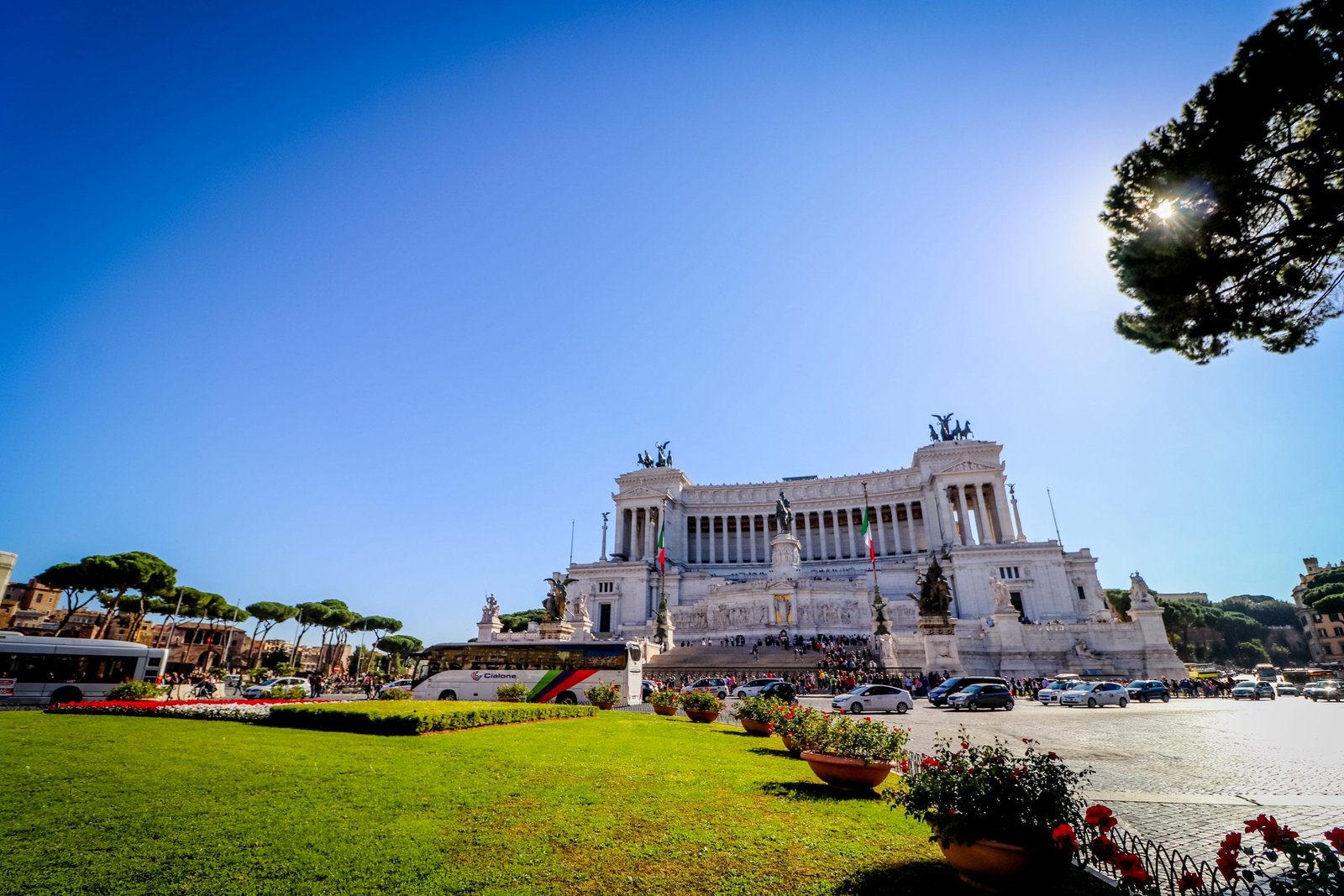 Altar of the Fatherland and landscaped Italian flag during the day-Rome Italy