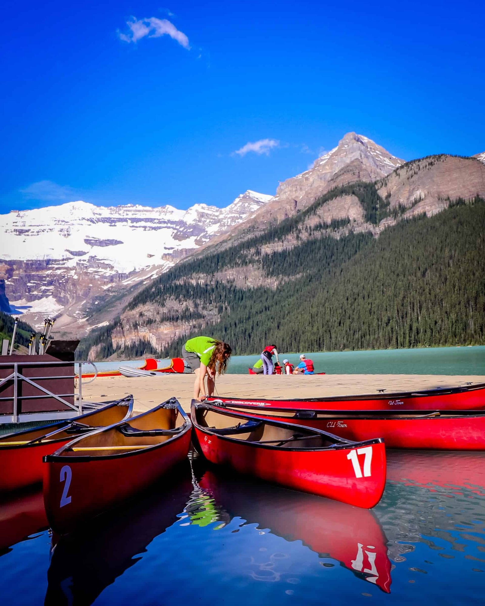 Ok, so Banff has been on my list of places to visit for a while, so I was super-stoked for this stop. The Canadian Rocky Mountains and the brilliant emerald blue water is breathtaking. If you love the outdoors, like we do, you’ll love this place!